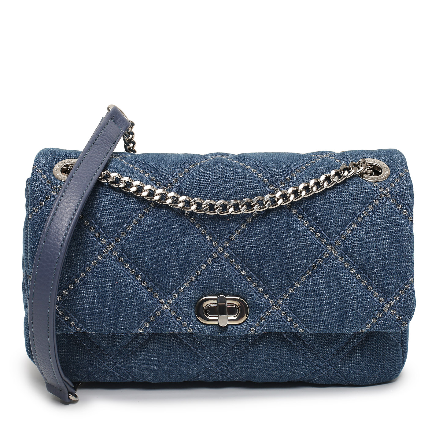 Сумка через плечо с цепочкой Marina Creazioni TRP242 6928_jeans_pc - 2000558779081 синий текстиль, натуральная кожа 24 x 14 x 8 Цена 13490 руб. купить в интернет-магазине PanChemodan.ru в Москве
