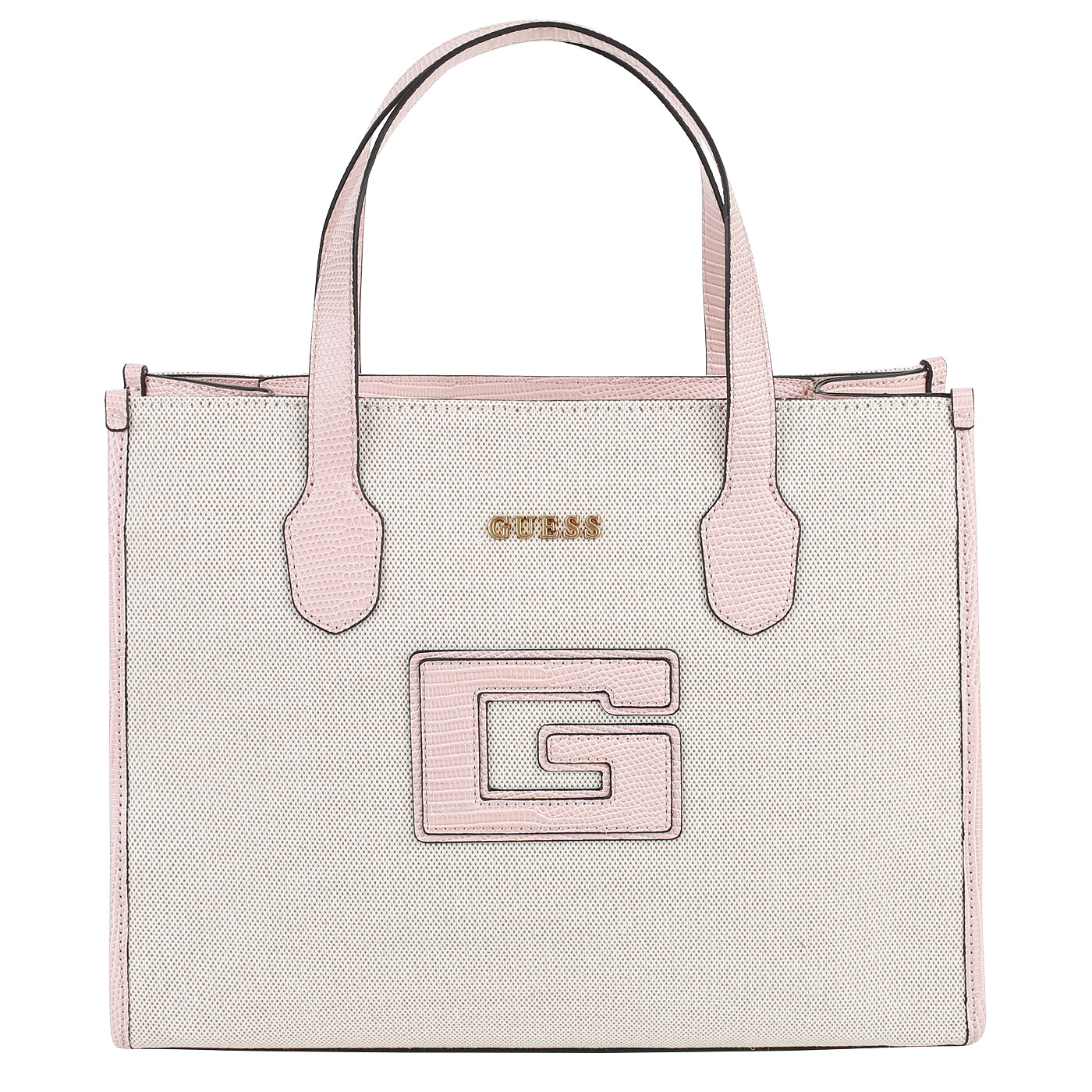 Сумка с двумя ручками Guess G Status 2 HWWK91 98220_natural/light rose_pc - 2000558625548 бежевый полиуретан 34 x 26 x 13 Цена 9320 руб. купить в интернет-магазине PanChemodan.ru в Санкт-Петербурге