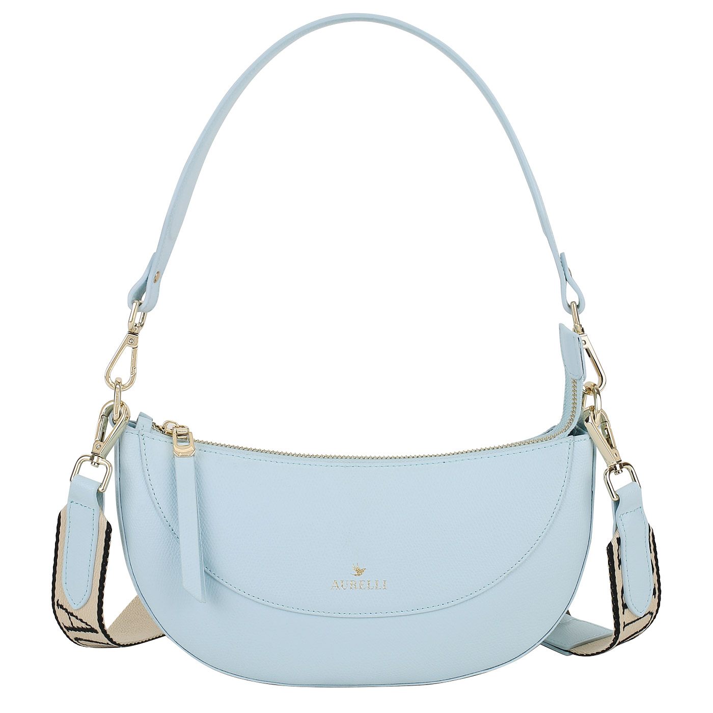 Кожаная сумка Aurelli Bella 23S0155-13G-cielo_pc - 2000558620970 голубой натуральная кожа 27 x 12 x 5,5 Цена 7640 руб. купить в интернет-магазине PanChemodan.ru в Москве