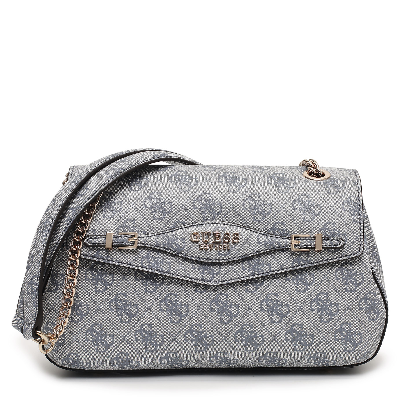 Сумка с ручками-цепочками Guess Katya HWSG96 52210_slate logo_pc - 2000558780452 голубой полиуретан 26 x 15 x 8 Цена 9250 руб. купить в интернет-магазине PanChemodan.ru в Москве