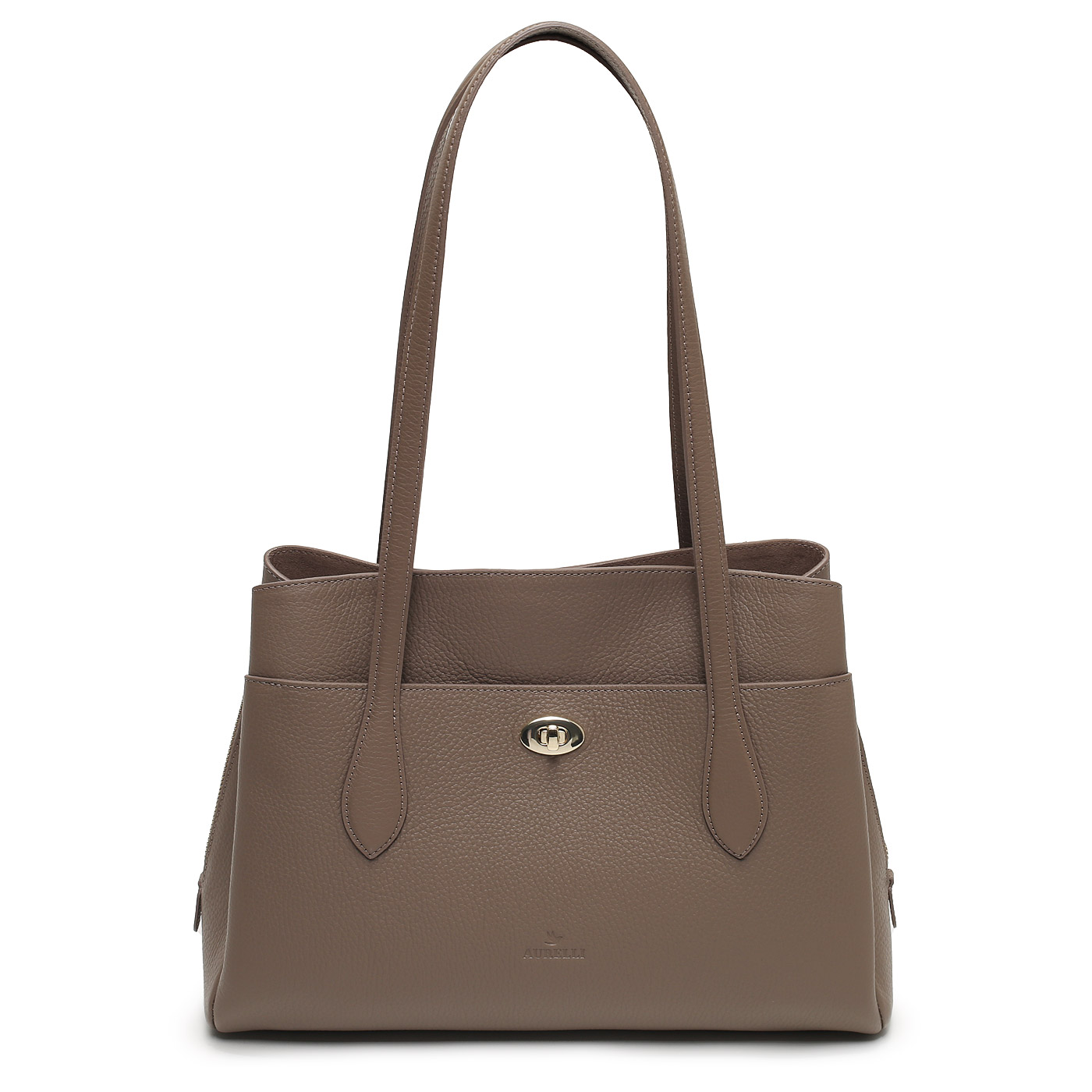 Кожаная сумка Aurelli Soft 20W0131-21G-taupe_pc - 2000558787918 коричневый натуральная кожа 35 x 23 x 14 Цена 21480 руб. купить в интернет-магазине PanChemodan.ru в Москве