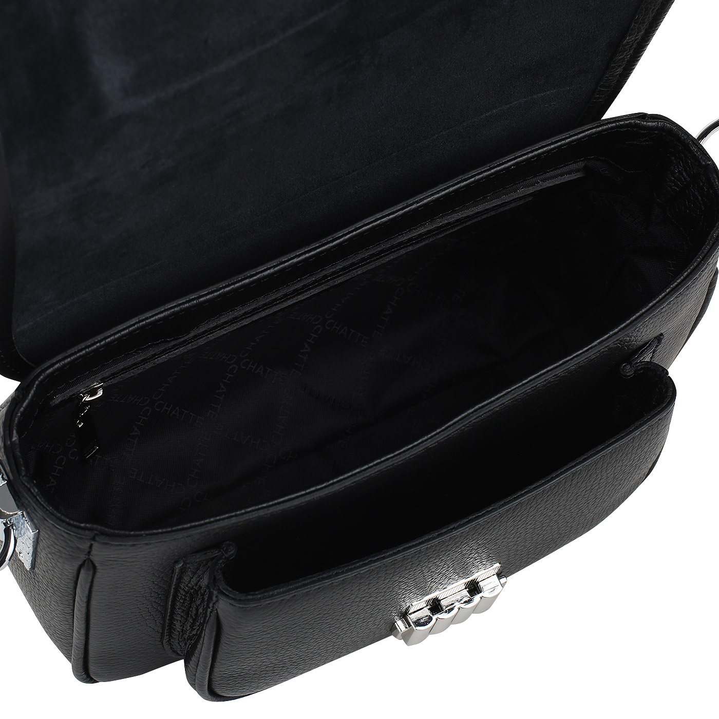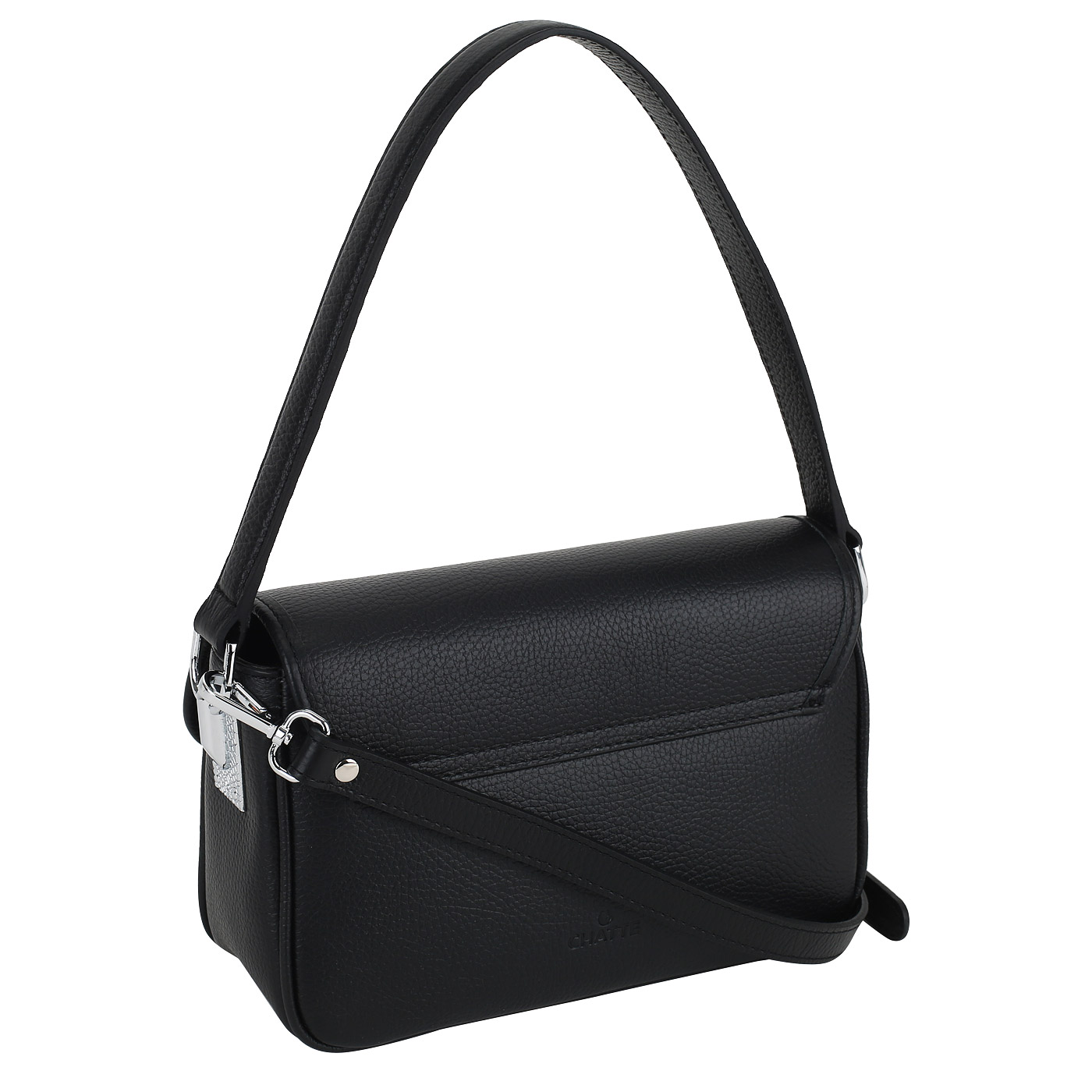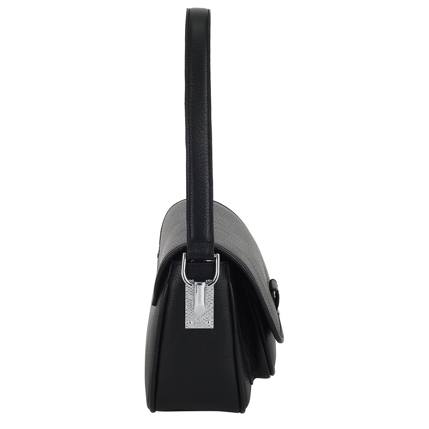 Женская сумочка из зернистой черной кожи через плечо
